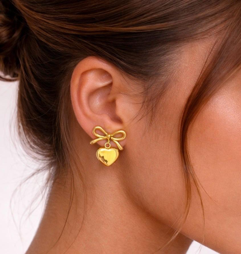 Delicati e femminili, gli Orecchini Bella uniscono la dolcezza del fiocco a un pendente a forma di cuore, creando un design elegante e romantico ma facile da indossare ogni giorno.