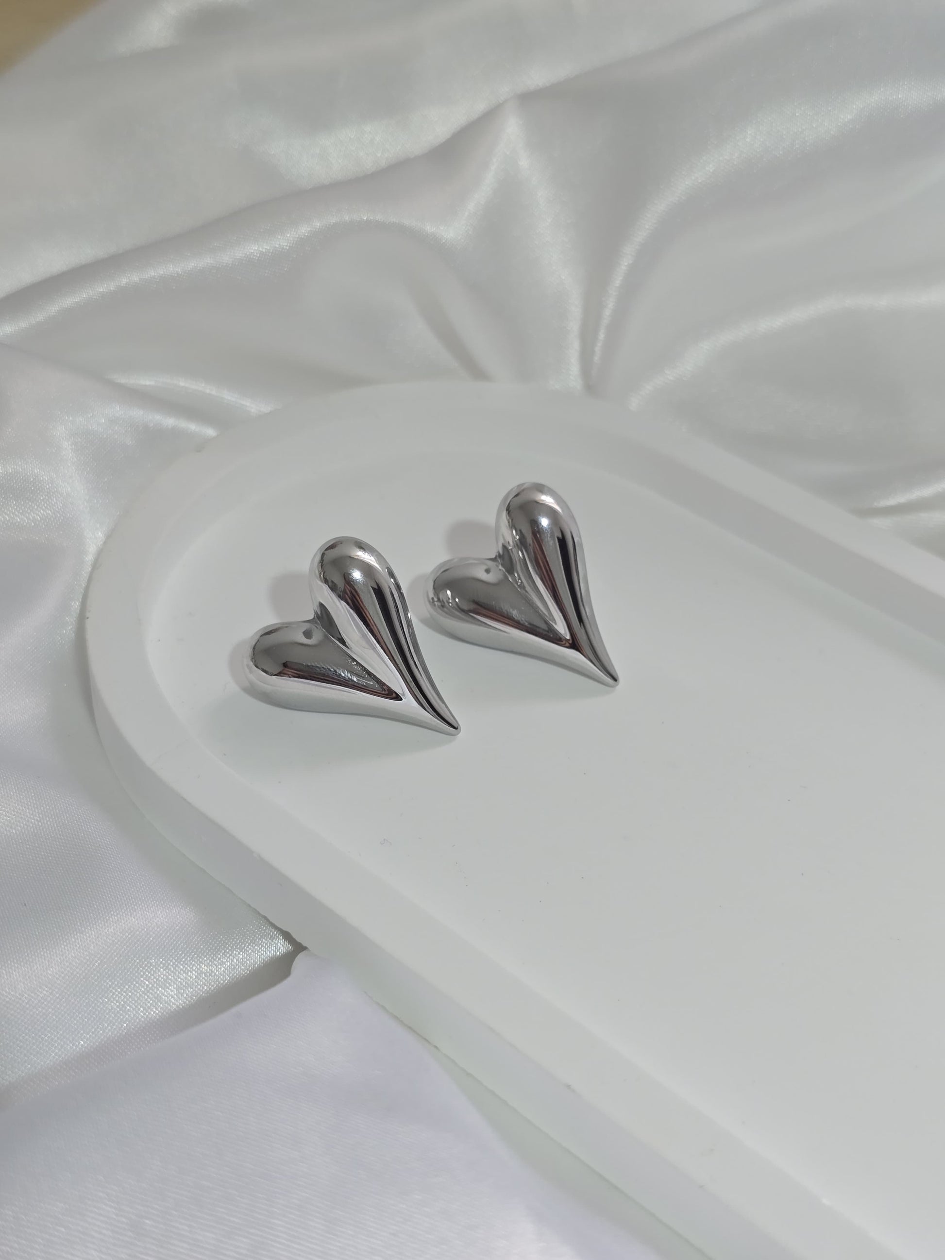 Orecchini a cuore bombato in acciaio inossidabile.Eleganti, lucidi e waterproof: il tocco perfetto per ogni look.