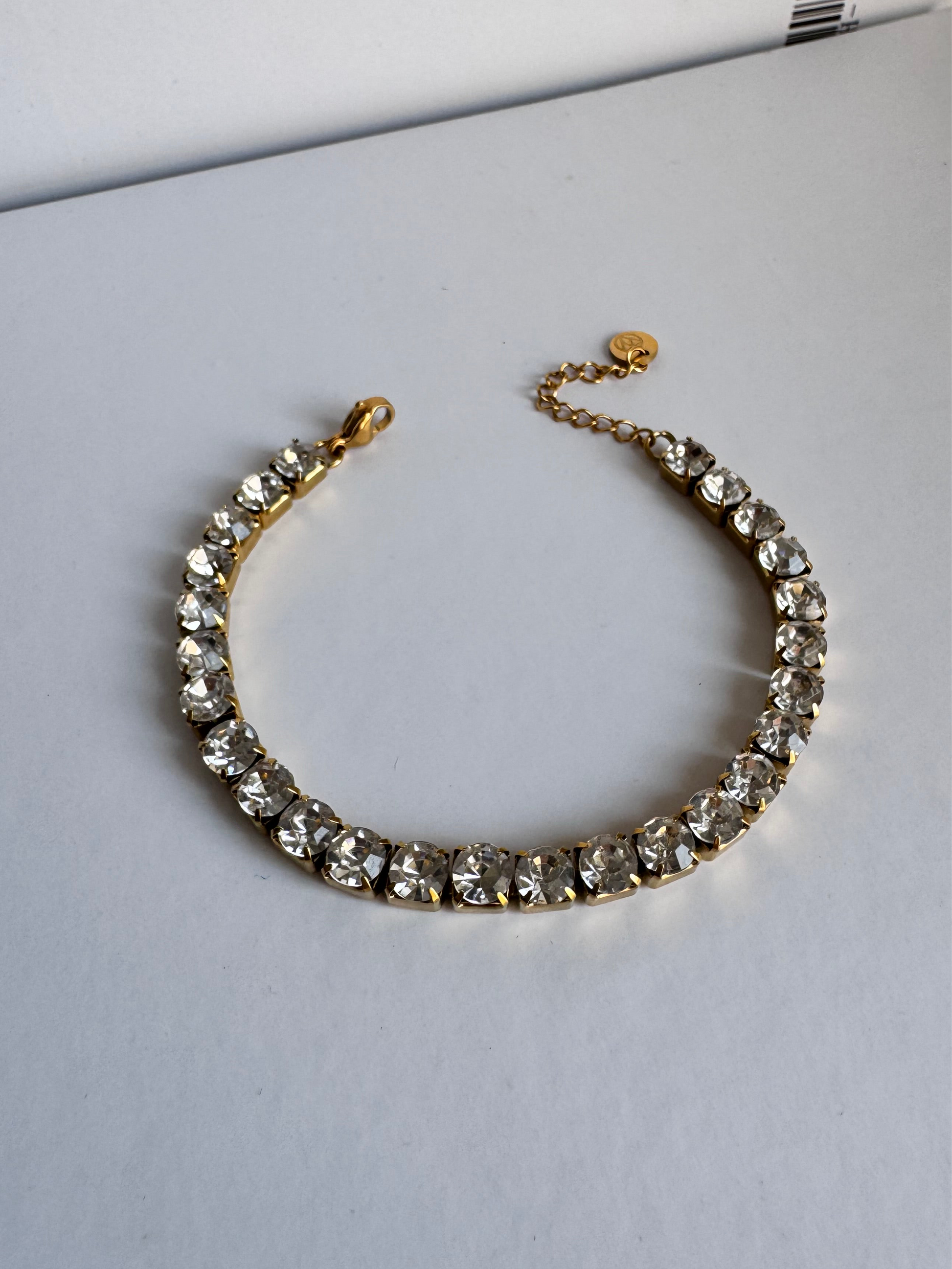 Bracciale in acciaio inossidabile con zirconi incastonati che donano un tocco di lucentezza al tuo stile, colore Gold